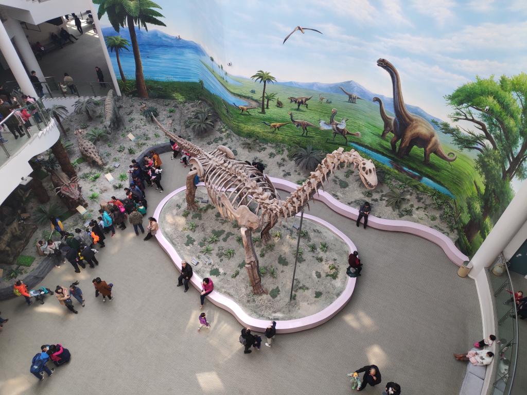 清晨的阳光明媚,同学们8点30准时到达铁石广场集合。确认全员到齐后,大家有序到达轻轨站,经过了90分钟的车程,最终于10点40到达目的地古生物博物馆。进入博物馆,第一眼看到的就是一架完整的恐龙化石。走进博物馆,里面展览了很多珍贵的古生物的化石,同学们走进了距今一亿多年的神秘生物世界。参观结束后,同学们自行参观自己感兴趣的园区,丰富自己的知识,探寻生命奥秘。11点30分,大家集合并合影留念。