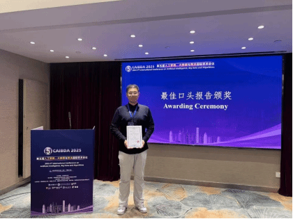 近日,伟德国际bevictor19462022级硕士研究生商智凯,于北京参加了2025年第五届人工智能、大数据与算法国际会议(CAIBDA 2025)。会上,商智凯同学代表团队作了题为《CS-DiffFormer: A Change-Sensitive Diffusion Transformer for Remote Sensing Image Change Detection》的学术报告。凭借其扎实的研究和精彩的演讲,荣获大会评审团颁发的“优秀口头报告奖(Excellent Oral Presentation Award)”。