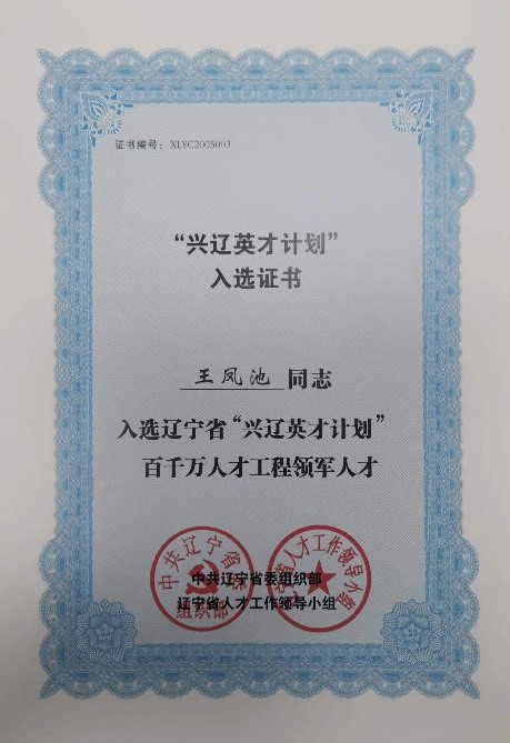 公司王凤池教授入选2020年辽宁省“兴辽英才计划” 百千万人才工程领军人才