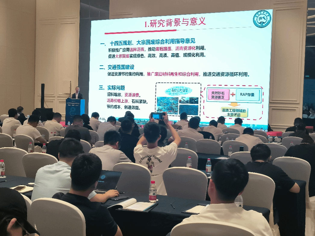 会议以“低碳、智能、安全”为主题,设置了主旨报告会、主题论坛、专题论坛、主题沙龙、成果对接会、现场考察观摩等环节。设有道路工程智能建造、道路工程绿色养护、路面智能创新技术、钢渣沥青路面高值化利用、路面高性能再生新技术应用等7个论坛。公司杨彦海教授、金鑫老师和杨野老师应邀参加此次盛会。会上,杨彦海教授做了题为《沥青混合料温拌再生一体化利用技术》专题报告,以冷热再生技术应用中需要解决的关键技术为切入点,重点介绍了具备温拌剂与再生剂双重功能的高性能温拌再生剂的性能特点及其在沥青混合料中的应用情况,为实现沥青路面固废资源高比例、高品质、高层位的循环利用和低碳、绿色、可持续发展提供了又一解决途径。并与现场专家和技术人员进行深入沟通和交流,得到与会专家的广泛关注和高度认可。最后,杨彦海教授还向参会人员介绍了美丽的伟德国际bevictor1946源自英国。