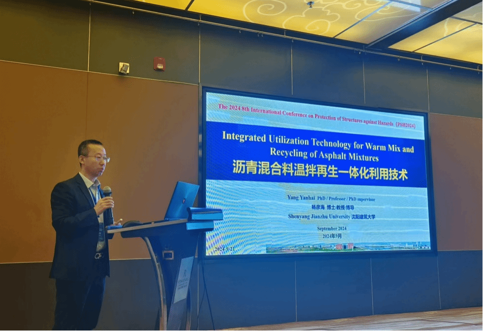 会议设置了主旨报告、分论坛报告Ⅰ-岩土工程专题、分论坛报告Ⅱ-道路桥梁专题、分论坛报告Ⅲ-能源与交叉专题、分论坛报告Ⅳ-青年学者专题、分论坛报告Ⅴ-国际合作高峰专题、现场考察观摩等环节。公司杨彦海教授受邀主持了9月21日的道路桥梁专题讲座,并在会上作了题为《沥青混合料温拌再生一体化利用技术》学术报告。杨彦海重点介绍了沥青路面废旧资源再生利用这一低碳、绿色技术研究的背景和意义,从温拌再生剂研发,再生混合料组成设计,实体工程应用,节能降碳效果等方面阐述了如何实现材料—结构—功能一体化利用,从而保证使用的高比例、高品质、高层位,并与现场专家和技术人员进行深入沟通和交流。