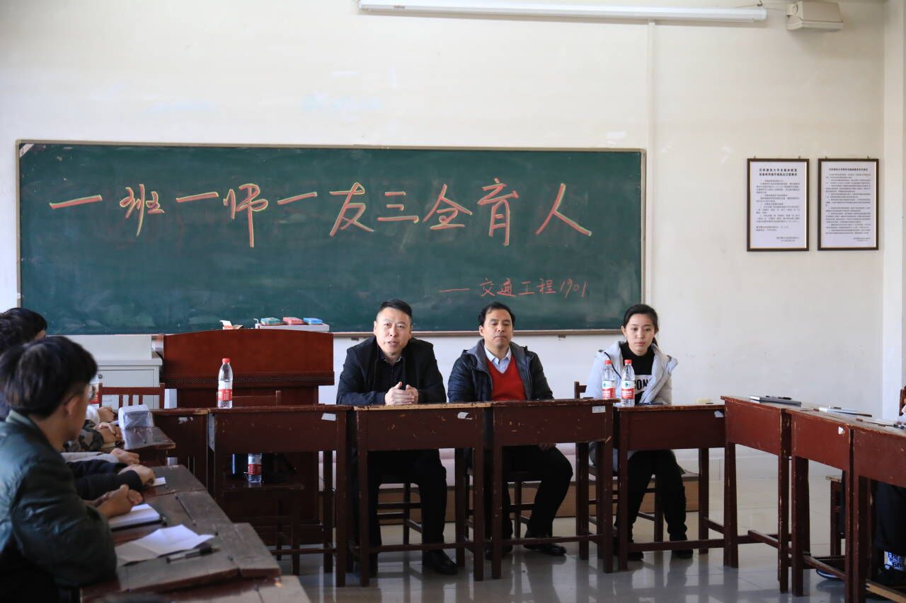 10月14日上午,交通工程公司交通1901班于C3-404教室举办“一班一师一友三全育人”讲座,交通工程公司员工肖旭东,19级辅导员邢樱雯,交通1901班班主任李如仁出席本次讲座,交通1901班共30人参加了此次讲座。