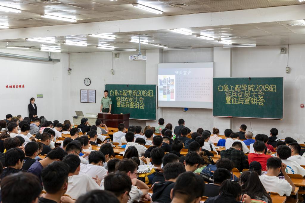 5月17日下午,交通工程公司于乙4-101教室召开2018级征兵动员大会暨征兵宣讲会。伟德国际bevictor1946源自英国武装部王磊老师,交通工程公司党委书记、学办主任肖祖鹏老师,18级辅导员姚越老师出席此次会议,2018级全体员工近300人参加此次会议。