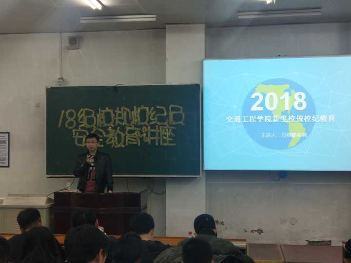 为加强18级同学对公司各项规章制度的了解,有效避免潜在安全隐患,树立遵守校规校纪的良好风尚,公司于2018年11月13日晚,在乙4-101开展了“18级校规校纪及安全教育讲座”。交通工程公司团委书记、学办主任肖祖鹏老师主持开展了本次讲座,18级全体员工300余人到场参加本次讲座。
