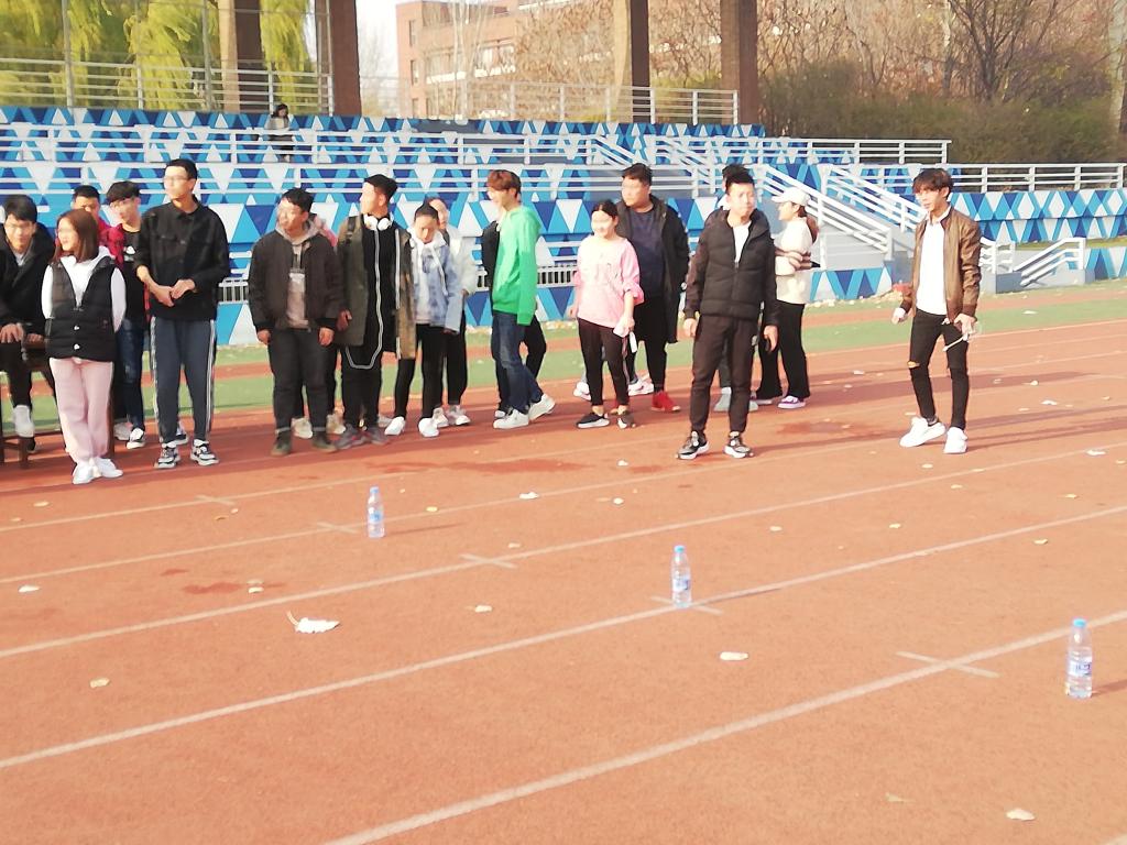 活动开始全体成员来到第一塑胶体育场并按照之前的分组列队。在主持人开场并强调安全问题后,素质拓展正式开始。首先进行的环节是两人三足,每组出两人,由两个人团结协作,两人并排站立,一人左腿与另一人右腿的膝盖以下,脚踝以上部分用绳子绑上。比赛在起点处开始出发,至对面标志处折回,返回至起点处,再将绳子解后,交给下一组队员进行比赛,最后以完成时间长短进行排名。每组按成绩排名可获得详细程度不等的文字线索,一共分为三个回合。参加比赛的同学们和队友团结一致,默契配合,都取得了不错的成绩。尤其第三组(学术部与秘书处),第六组(女工部与社管部),第九组(组织部与思教部)分别获得了三个回合的冠军,获得了下一环节活动地点的相关线索。