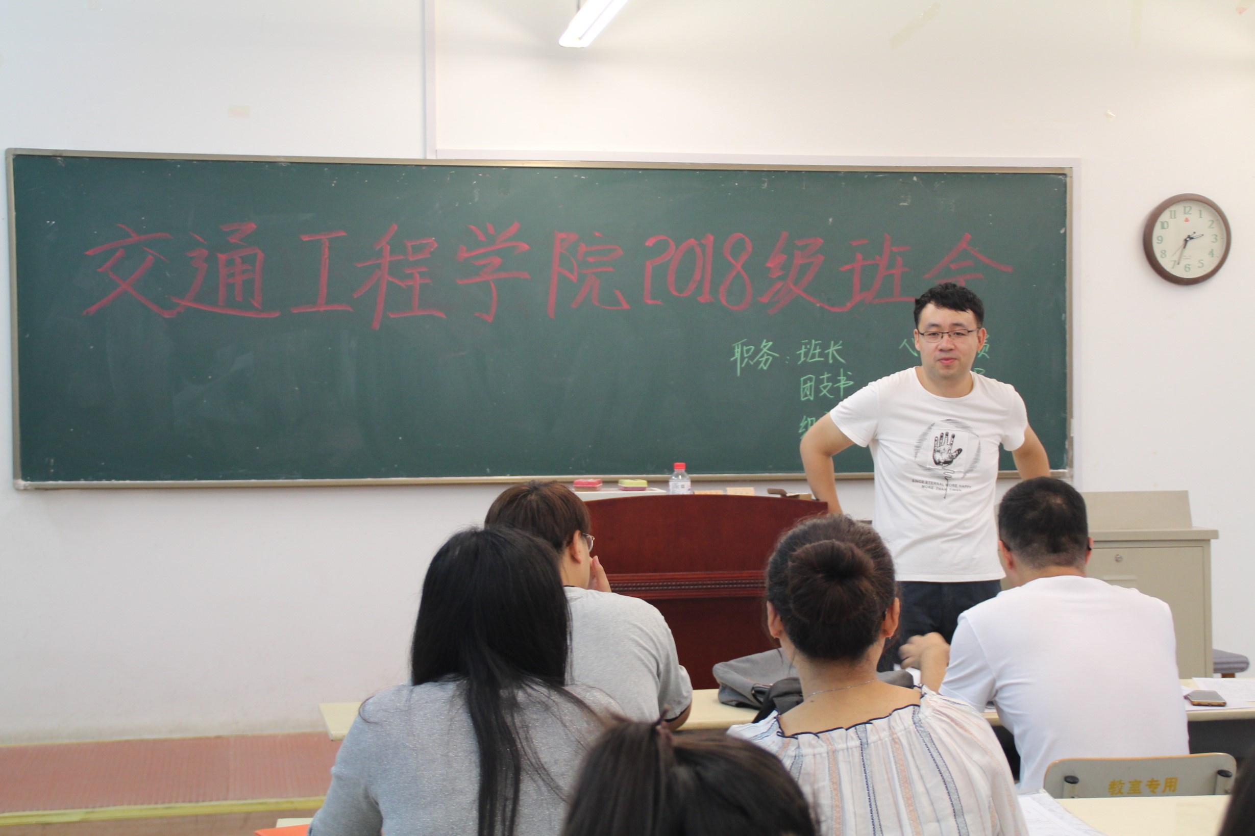 班会上,18级研究生首先进行了自我介绍,大家介绍了自己本科及考研的经历,提出自己下一步的规划。在轻松的氛围中,大家互相了解,深入交流。随后,班主任姚越老师和大家介绍了交通公司的一些基本情况,并对18级研究生提出了要求,希望大家全力奋进,研途顺利。最后,辅导员褚召阳也和大家讲述了公司研究生会的具体情况,并主持18级研究生进行了班委的选举。