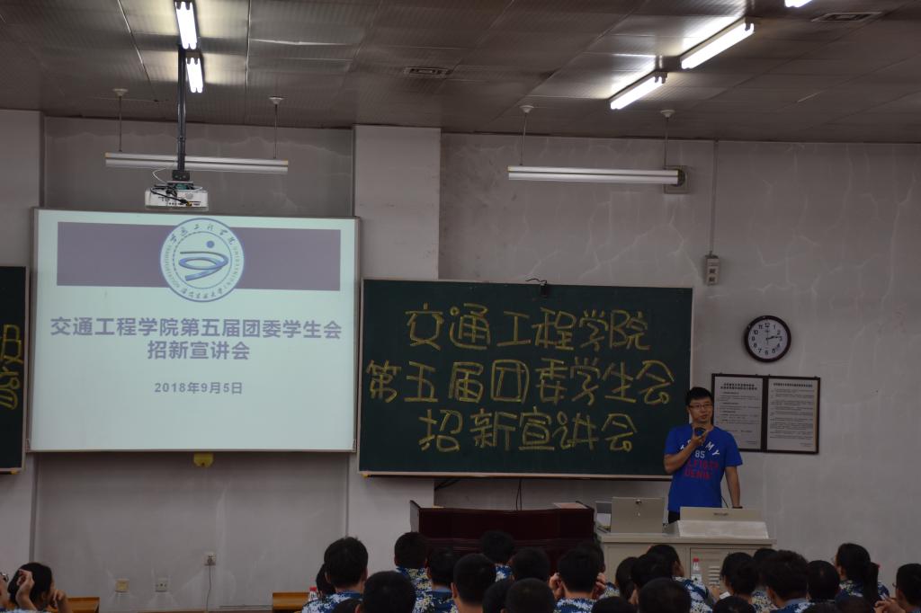 9月5日下午2点,交通工程公司在公司乙1-101教室召开第五届团委员工会招新宣讲会。交通工程公司团委书记、学办主任肖祖鹏,2018级辅导员姚越老师出席此次会议。2018届团委员工会主席团成员及全体新生共三百余人一同参加此次会议。