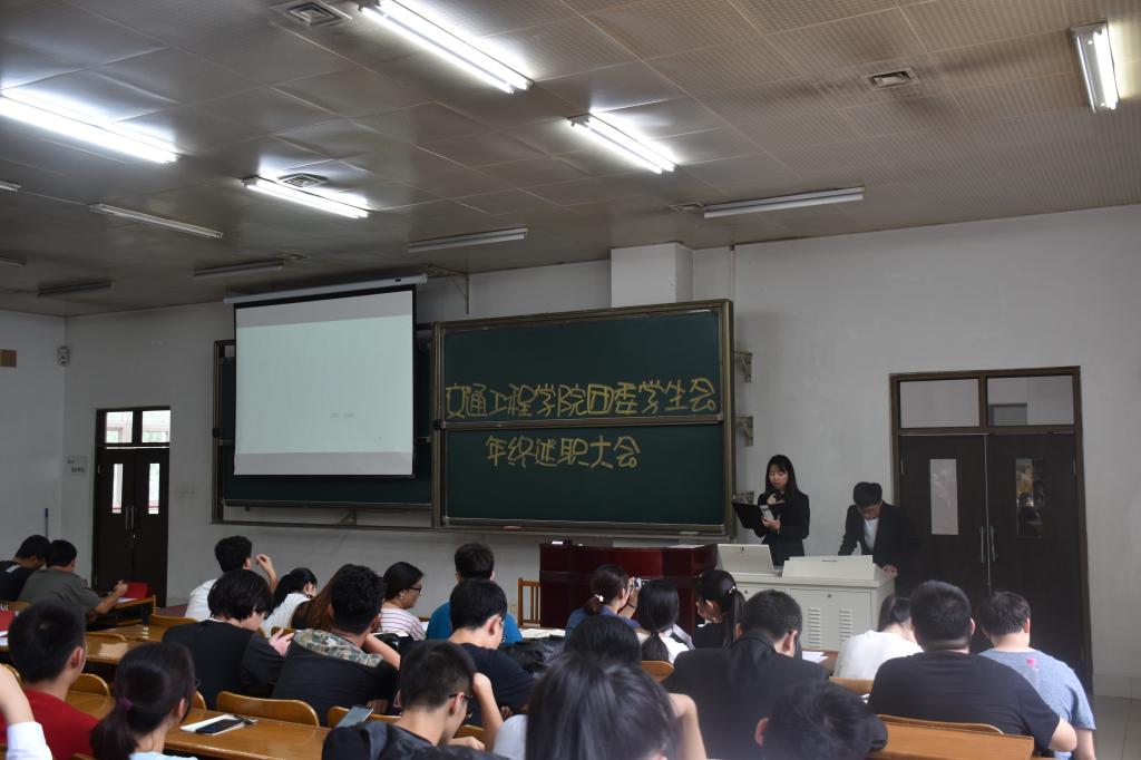 7月9日中午,交通工程公司团委员工会期末述职大会在A1-203教室举行。交通工程公司党委副书记、副经理何林,团委书记、学办主任肖祖鹏,14级辅导员李依默,15级辅导员刘伊娜,16级兼职辅导员田晓娜出席本次大会,交通工程公司团委员工会全体成员180余人参加本次大会。