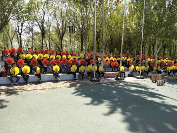 5月9日中午十二点四十分,大一观众席参与人员顶着烈日来到操场,在心智部、社活部、思教部相关训练负责人员的指挥下,开始了长达一小时的观众席训练。