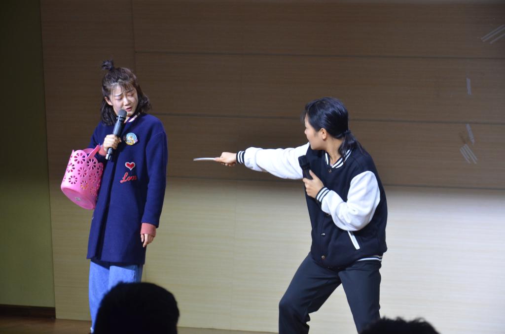 11个组的选手按抽签顺序依次上台表演,每组选手都带着各种道具登台为大家抛包袱,献笑点,表现十分精彩,引来台下观众阵阵喝彩。评委为每个组的表演做了评讲,并即兴做了示范。活动最后,特邀嘉宾交通学院李秋朔深情献唱,将现场气氛推向了高潮。最终11个组的选手中有5组晋级决赛,其余6组选手将参加线上复活赛。